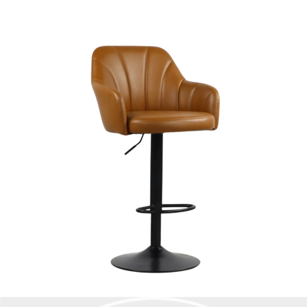 Taburete Cook Black fabricado con estructura de metal resistente en color dorado y cojín tapizado en felpa, su altura de asiento es ajustable entre 62 cm – 83 cm aproximado.